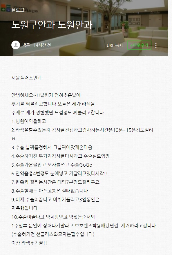 서울플러스안과, 노원라식, 노원안과 라섹 수술 후기 - ..